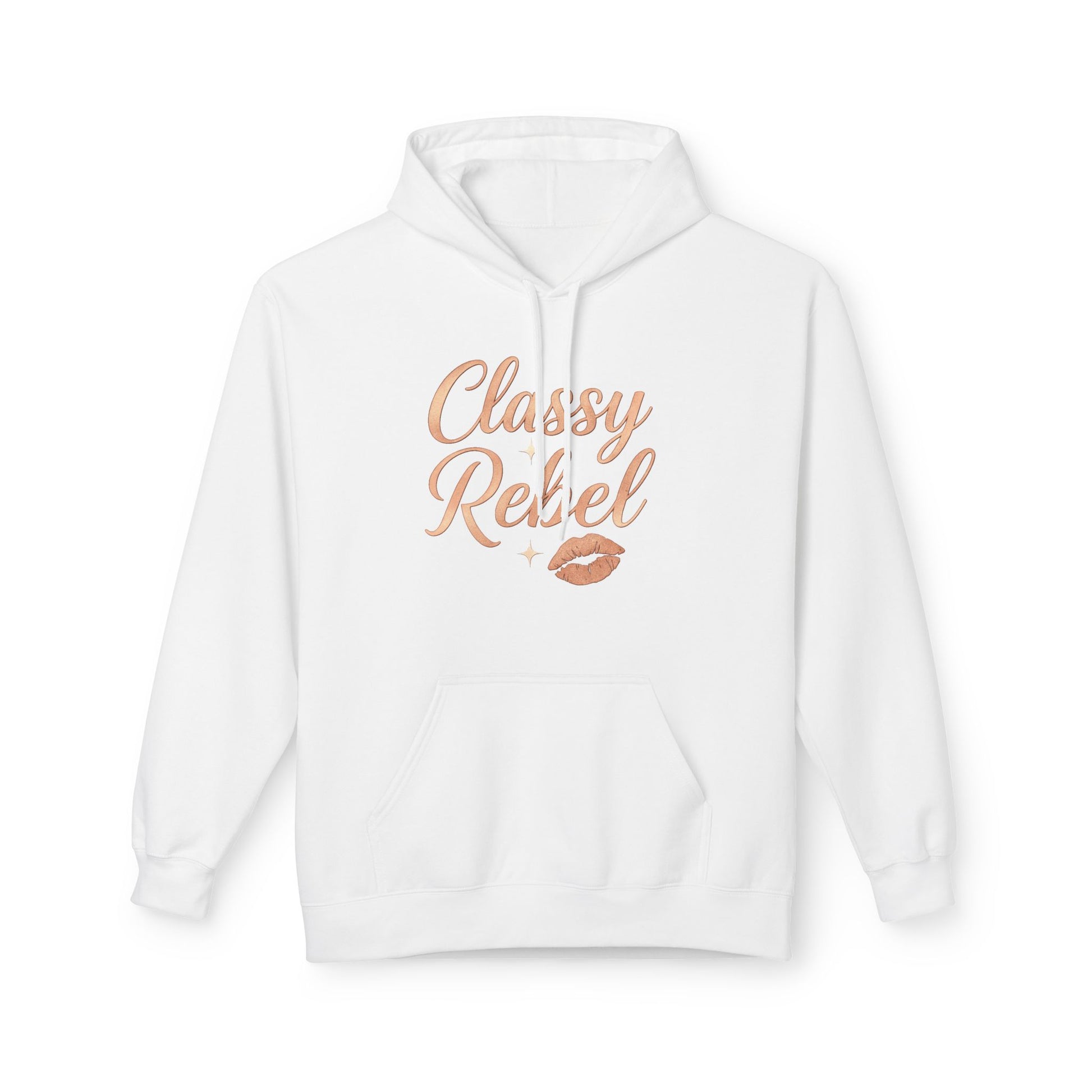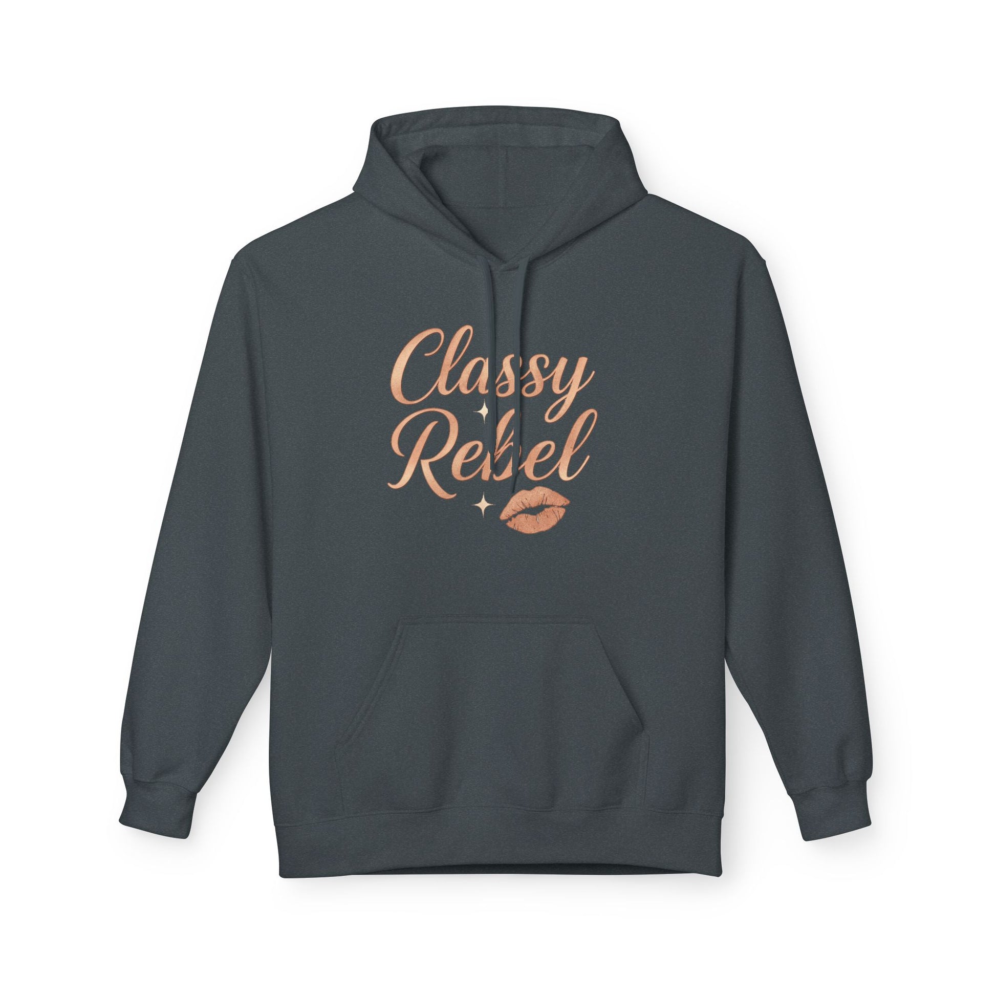 Mit seinem modernen Schnitt und der entspannten Passform verleiht der Hoodie jedem Outfit einen lässig-eleganten Look. Das Design „Classy Rebel“ steht für Selbstbewusstsein, Stil und einen Hauch Rebellion – ideal für modebewusste Menschen, die Individualität lieben.