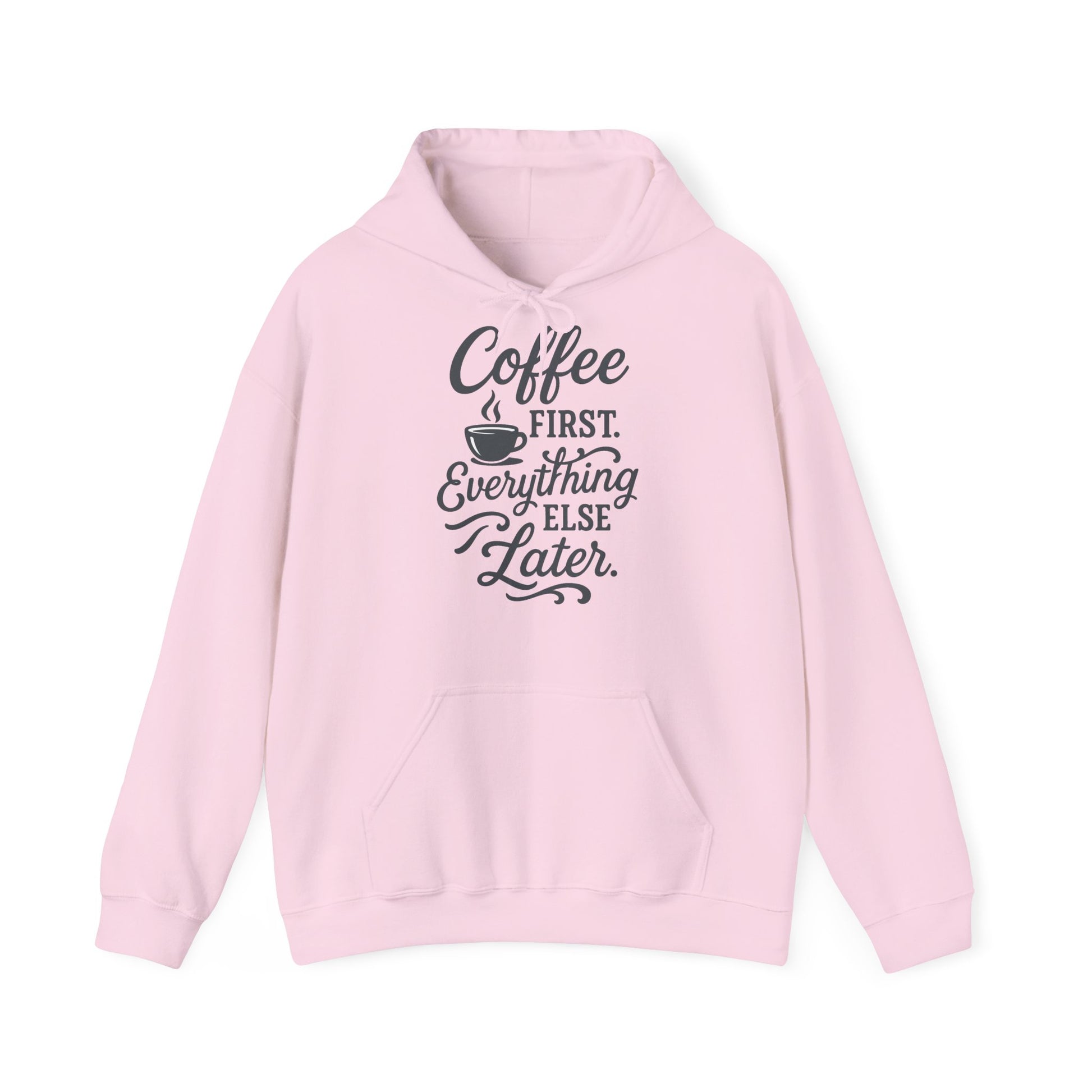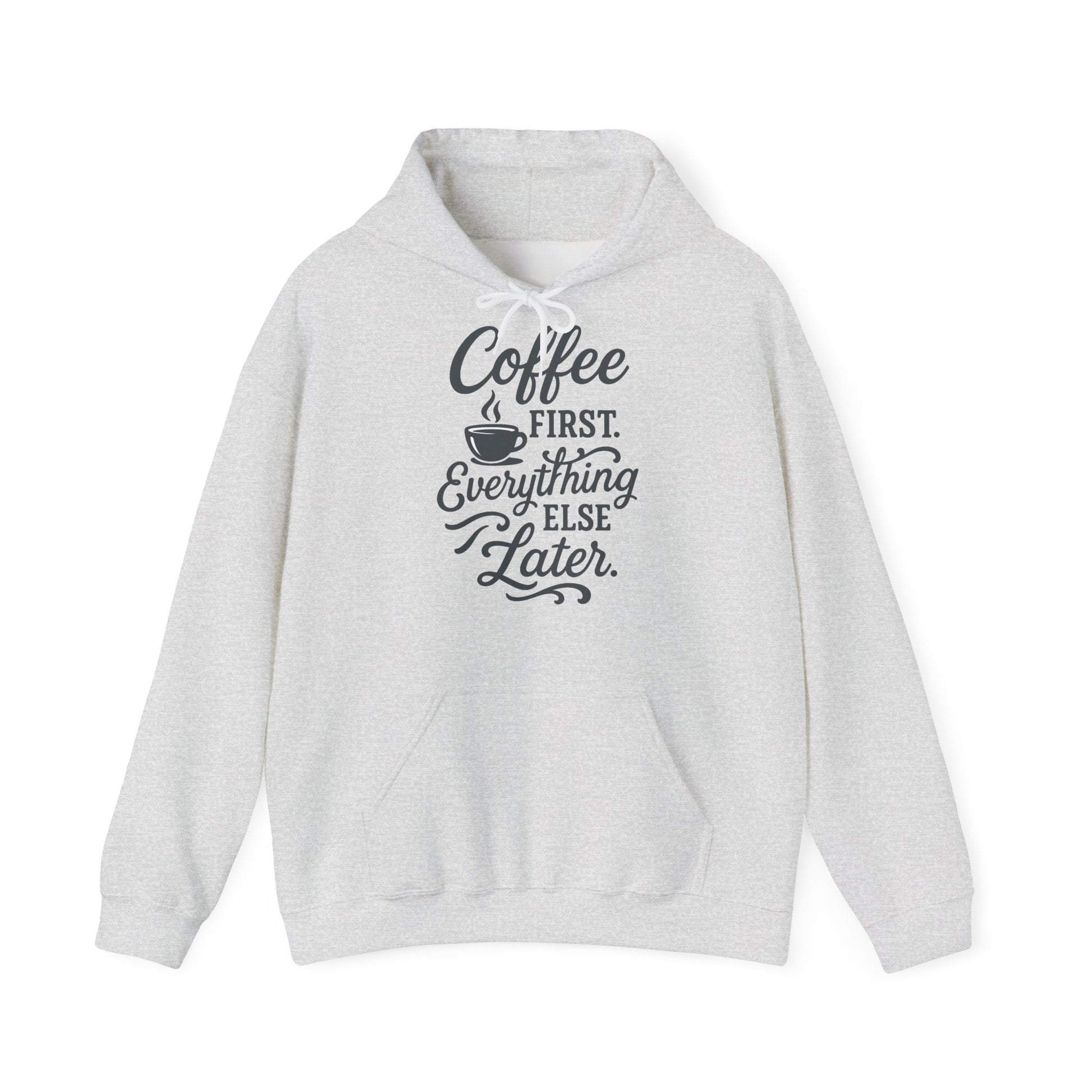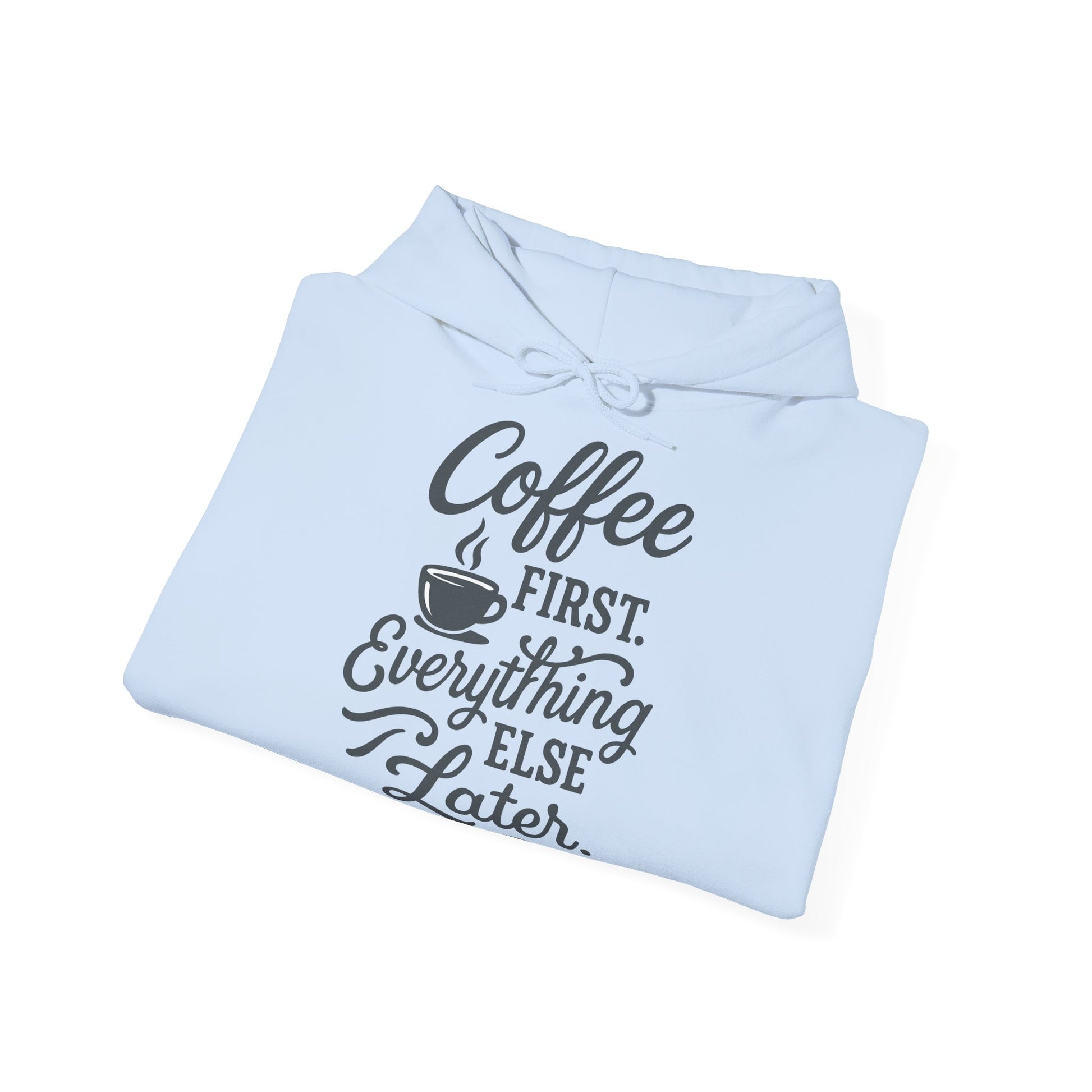 Unisex Heavy Blend™ Hoodie – „Coffee First. Everything Else Later.”