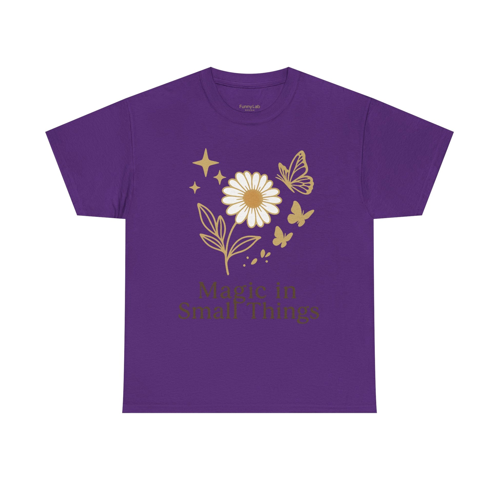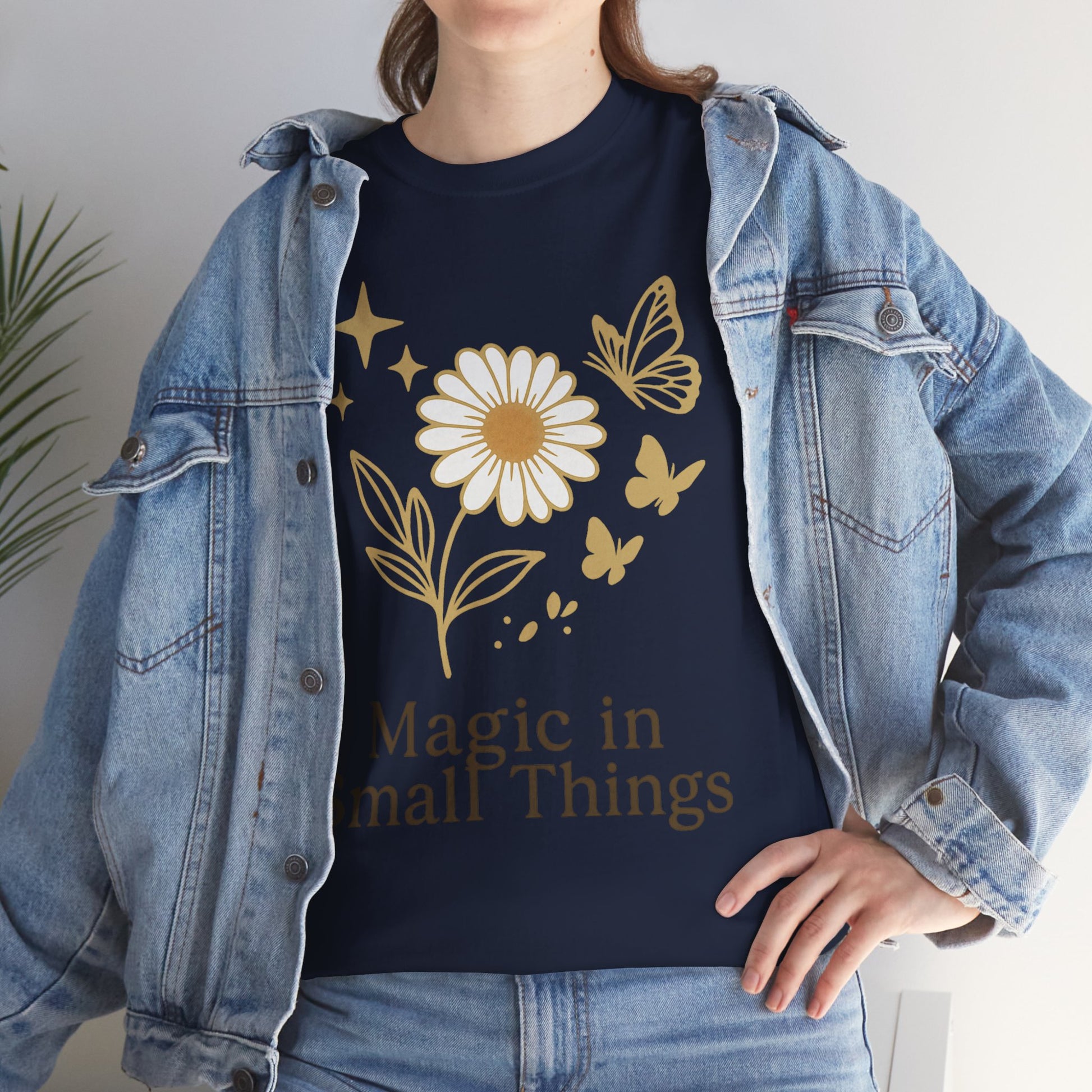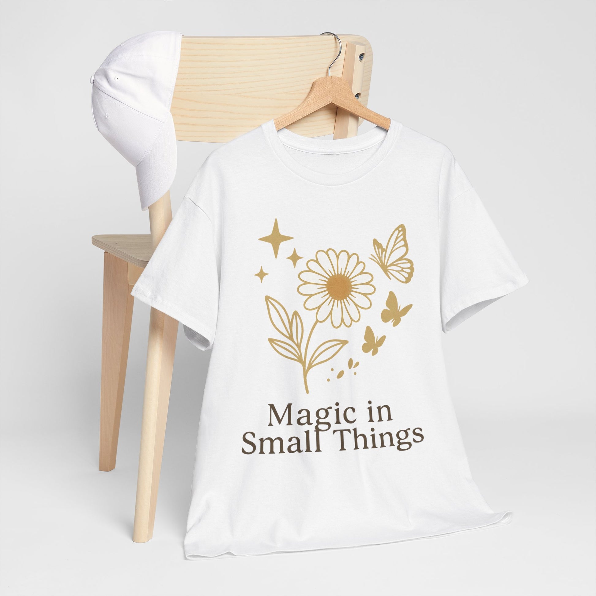 Das “Magic in Small Things” T-Shirt auf dem klassischen Gildan 5000 Heavy Cotton bietet eine perfekte Kombination aus hochwertigem Material und liebevoll gestaltetem, floralen Motiv.